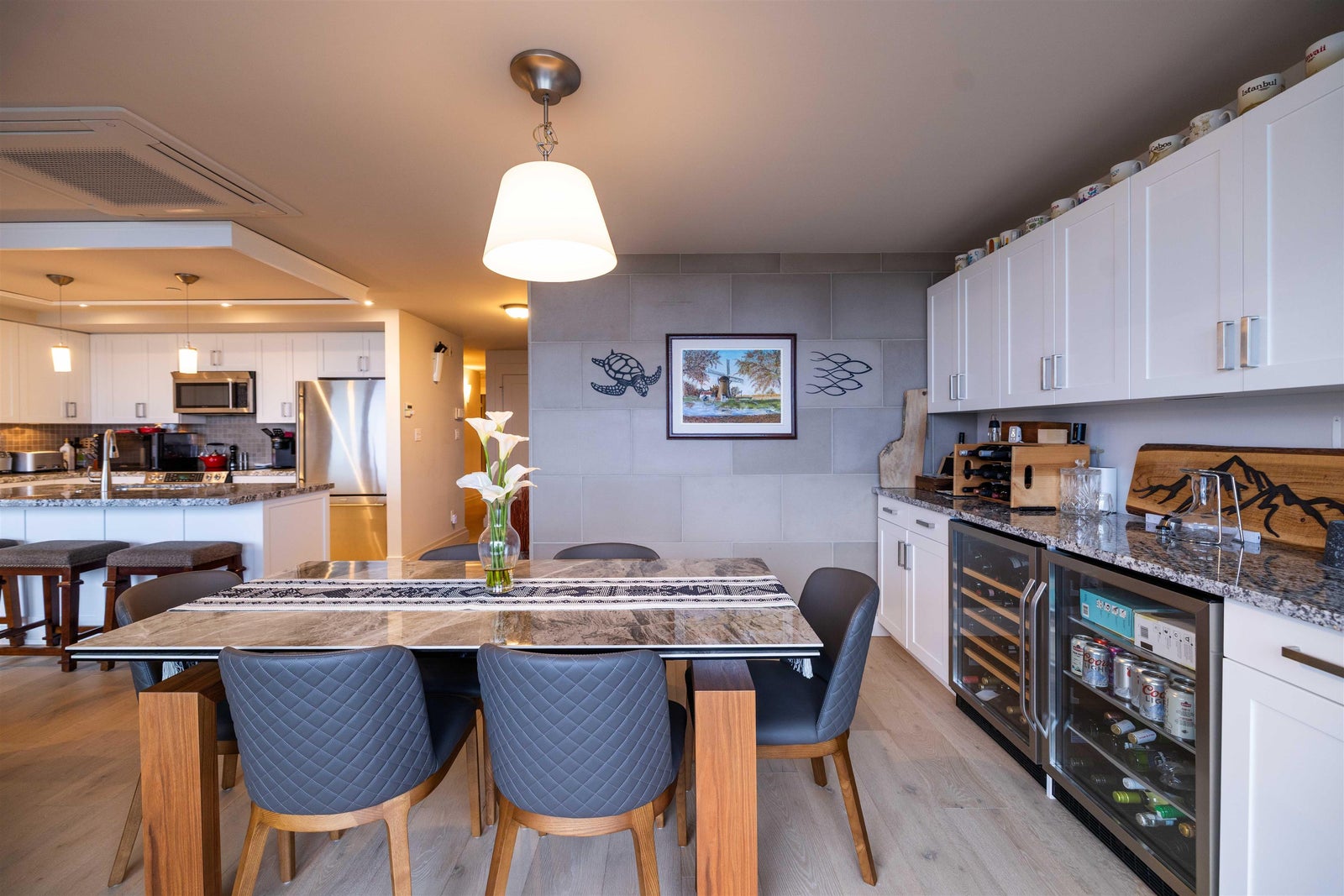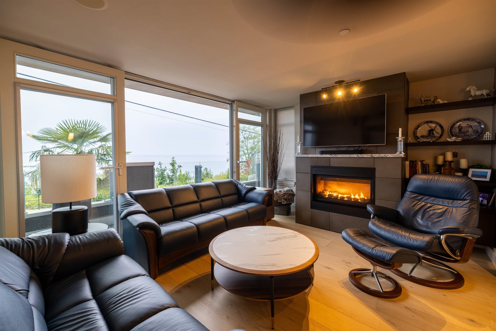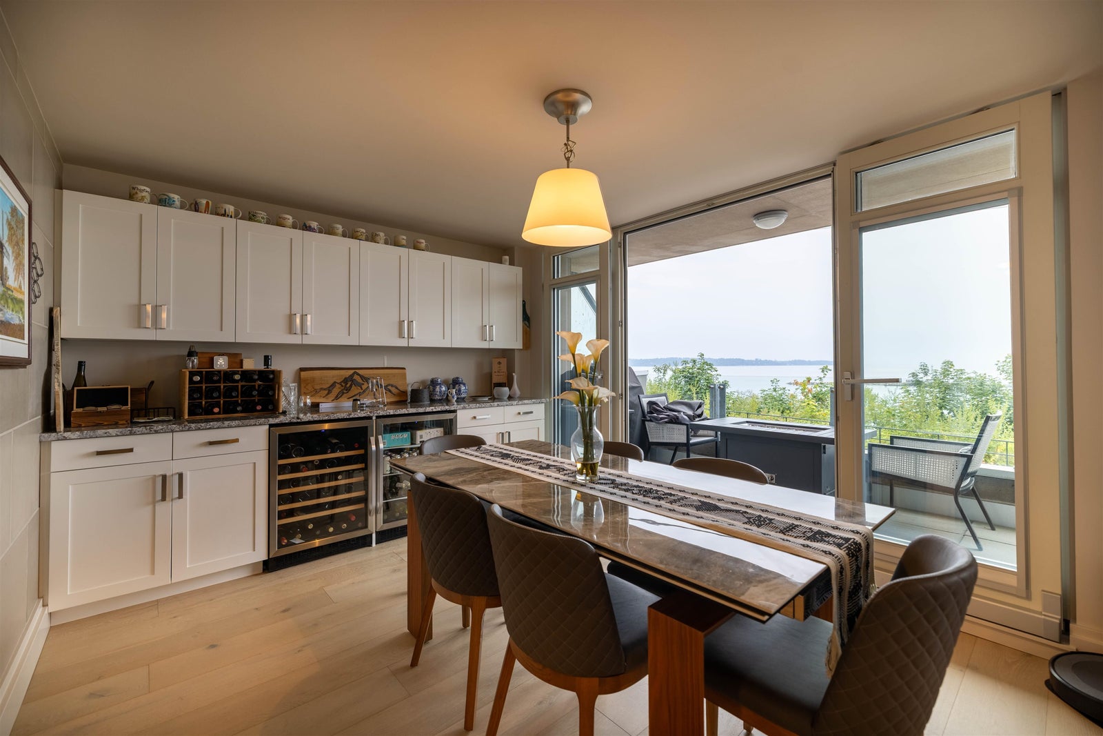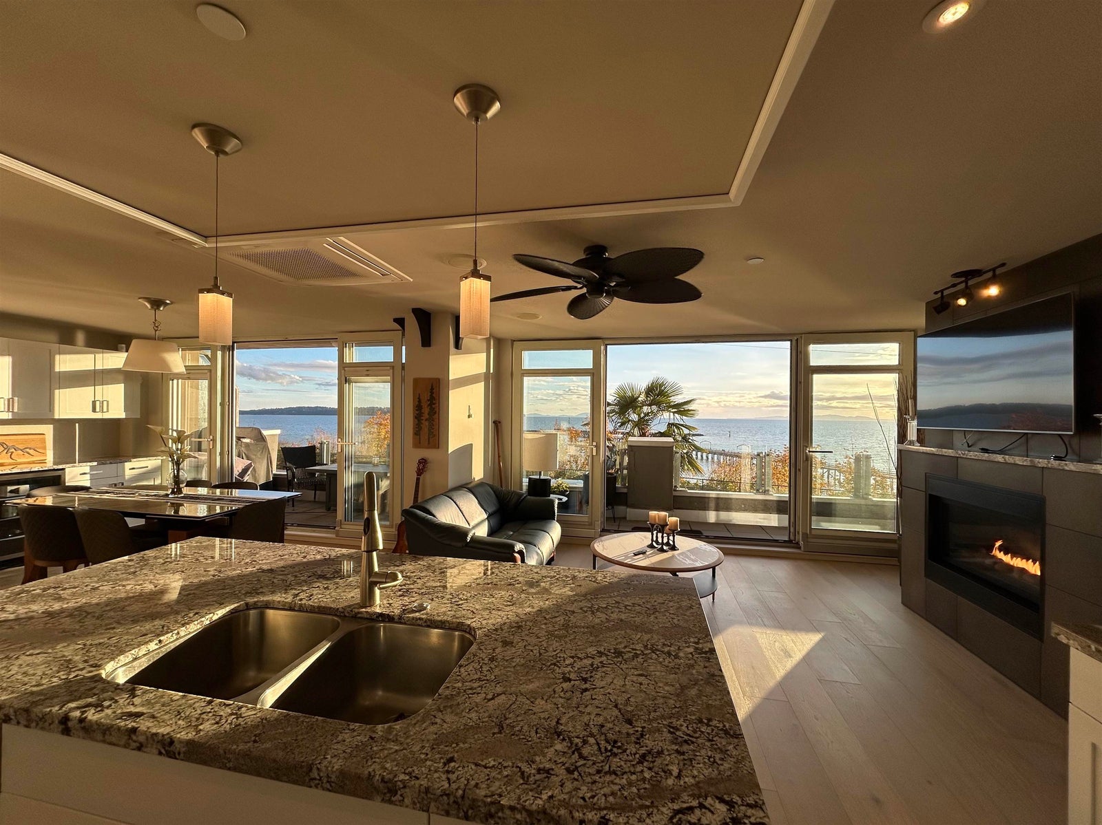 Coastal water front living at its finest. Welcome to Top of the Rock, an exclusive boutique residence perched above the iconic White Rock waterfront. This 3-bedroom, 2.5-bath comes with storage, 2 separate parking stalls & 1 Tesla charger. The suite boasts 1,568 sqft of refined living and breathtaking panoramic ocean views in the living space to the primary bedroom. Step outside to the lively Marine Drive strip lined with local cafés, oceanfront dining, artisan shops, and the iconic White Rock Pier. A rare blend of luxury, lifestyle, and location in a concrete building offering privacy, and effortless living. Detailed walk through video in virtual tour link! Extremely rare to market!